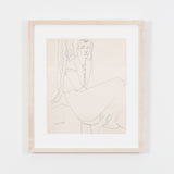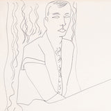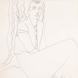 With the lightest touch, Warhol masterly portrays this male ideal with the details of his natural pose. Unique to this work is the drapery rendered behind the man, capturing the essence of their exchange in what appears to be a relatively formal (perhaps studio) environment. This distinct atmospheric quality is typically omitted in Warhol's line drawings, which tend to focus on his subjects rather than background details.