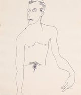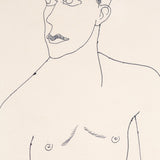 This drawing is a paradigm of Warhol's mastery of line. This elegant portrait, presents the sitter with one shoulder relaxed downward (almost reminiscent of contrapposto) as he peers over it.