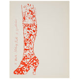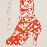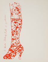 “A Whole Stocking Full of Good Wishes” is emblematic of Warhol’s work during the late 1950s, having established his reputation with drawings of clothes, accessories, and stylized beauties in a distinctively elegant but playful aesthetic. Working within the niche, Warhol created holiday-themed greeting cards for Tiffany & Co. from 1956-1962, depicting classic symbols such as ornaments, Christmas trees, and of course, shoes decked with holly, each card as whimsical and joyous as this piece.Â