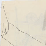 Curiously, the reverse of the page contains a rendering of a man reaching toward an outstretched hand in an embrace. The drawing is evocative of Warhol's personal art practice at the time which was romantic, hopeful, and unabashedly gay.