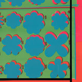 The floral pattern recalls Warhol’s iconic Flower paintings and prints from the mid-1960s. In these, he reduces hibiscus flowers to a basic motif, rendering them in unnaturally vivid hues similar to the fashion patterns and palettes from that era.