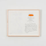 "A + P Surprise" is a delightful paradigm from this era. This whimsical lithograph is an output from Warhol's self-published cookbook, "Wild Raspberries", a collection of fanciful recipes and illustrations that satirize the extravagant gastronomy of the 1950s.Â
