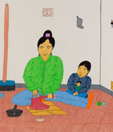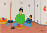 Interior domestic settings, specifically showcasing food preparation and female domestic life, are among Pootoogook's best-known imagery.
