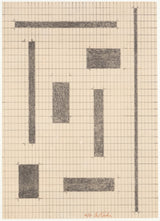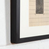 The composition of this signed and numbered print was inspired by one of Andre's legendary sculptures presented at the Dwan Gallery (Los Angeles) in 1967. Andre covered the entire gallery floor with flat bricks, leaving recesses similar to the shaded elements on this print's grid surface.
