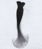 Cathy Daley is a Toronto-based artist who began receiving international attention in the 1980‘s for her signature style of depicting the female form. Her most iconic works, such as this one, feature elegant female figures in glamorous evening gowns, tutus, and dresses; done in thick black ink on near-translucent vellum paper.