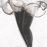 Cathy Daley (1955-2022) was a beloved Toronto-based artist who began receiving international attention in the late 1980‘s for her signature depictions of the female form. Her most iconic works, such as this one, feature elegant female figures in glamorous gowns or costumes. She almost exclusively worked with black oil pastel on translucent vellum paper. Daley perfectly balanced abstraction with stylized figuration.