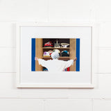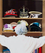 In "Decisions, Decisions", Pachter playfully presents the Queen in a moment of contemplation, pondering which hat to choose, or rather, which role to assume.