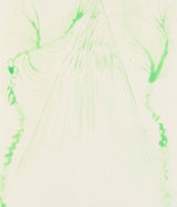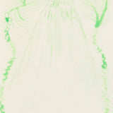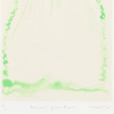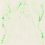 "Green Riann" is perhaps the most ephemeral and delicate image from the "Rainbow" portfolio. It features a majestic but ambiguous central form that could be interpreted as either a mountain or waterfall, captured from a low vantage point. The towering figure rises dramatically through the center of the work while supple botanical or skeletal/marine forms, rendered in diffused swathes of lime green, frame either side of the composition. Unfortunately the title does little to illuminate this highly expressionistic landscape; Riann is a Celtic girl's name that translates as "Little King"