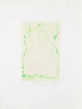 This piece is part of Chris Ofili's "Rainbow" portfolio, a small and rare collection of twelve dynamic prints rendered in various pastel tones. Each work is realized in a rainbow hue and dominated by nearly a monochromatic palette. The result is a uniquely uplifting body of work that showcases the artist's distinct vision and exploration of color and form. One gets the sense of Ofili truly celebrating and luxuriating in the climate, mystery and landscape (or dreamscape) of the Caribbean.
