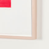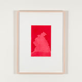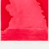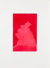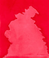 Set against a cherry red backdrop, "Red Cave" features a diaphanous cerise form that swells upward, overtaking the center of the work. The two colors are the sole focal point in this relatively minimal piece, effectively creating a composition that is both visually striking and harmonious. The form recalls both the entrance to a cave but also an element of map or outline of an island tip.