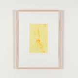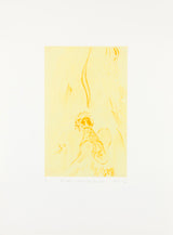 Spit bite aquatint with drypoint printed in orange on yellow gampi paper chine collé