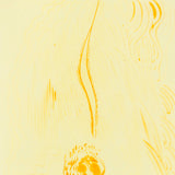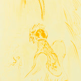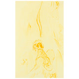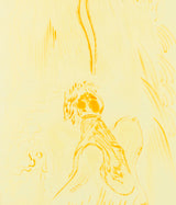Regardless, the contrast of the bleached lemon yellow background with intricate linework in varying opacities of ochre contributes to a sense of motion and mystery.