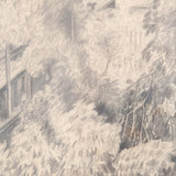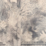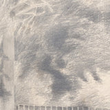 "From Carol's Window" is a refreshing work on paper by Pflug. Capturing a backyard from an elevated vantage point, Pflug details the abundant trees, their foliage bursting across the page. A picket fence and neighboring balcony are among the hints of domestic life that peak between the branches, serving as a poignant example of Pflug's contemplative spirit.