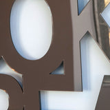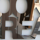 The work blurs the responsibilities of mirror, signage, slogan and sculpture.