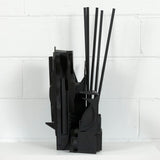 Like the best of Nevelson's work "UJA" alludes to tribal art and utopian or post-apocalyptic architecture.