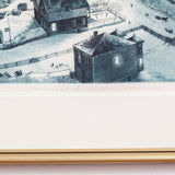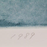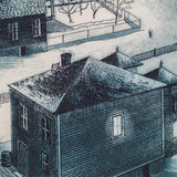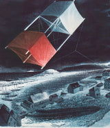 "Uncle Cluny’s Kite over Wesleyville", 1989 depicts the town in Newfoundland where Blackhood was born and employs the aquatint variation of the intaglio printmaking.