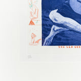 Hockney’s “Blue Guitar” refers to Wallace Stevens’s 1937 poem “The Man With the Blue Guitar,” which was inspired by Picasso’s blue period panting, “The Old Guitarist” from 1903. It is the most iconic image from this series.