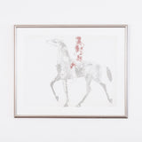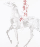 "Horse and Rider I" serves as an excellent testament to Frink's body of work. This elegant print shows a man mounted on a horse, both poised and dynamic. The rider is stylized and possibly unclothed, emphasizing the musculature of both subjects, and the instinctive bond between the two.