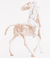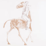 "Horse and Rider I" serves as an excellent testament to Frink's body of work. This elegant print shows a man mounted on a horse, both poised and dynamic. The rider is stylized and possibly unclothed, emphasizing the musculature of both subjects, and the instinctive bond between the two.