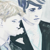 This work from 2000 is one of Peyton's most iconic prints. The young royals are depicted in gentle pastel colors. Typical of Peyton's approach, the male features are some what lessened creating a more androgynous version of these famous brothers. Peyton has done several depictions of William and Harry, both together and individually.