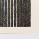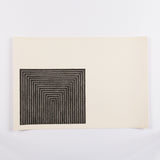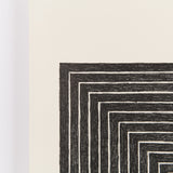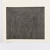 The graphics from "Black Series" were mostly based on paintings that Stella had created between 1958 and 1965. However one of the major distinctions, and key aesthetics choices, was Stella situated the compositions in the left corner - this placement became a signature motif for his prints for the next decade.