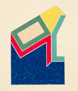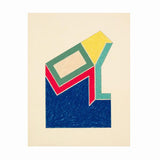 In this work, like its siblings from the "Eccentric Polygons", we see funky shaped brightly colored shapes push, wedge, support or jostle against other forms for pure visual pleasure.