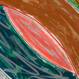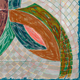 "Polar Co-ordinates" are derived from Stella's famed "Saskatchewan Series" paintings completed between 1967-1970. This particular print has the signature shape of the Flin Flon paintings, which were a modification of his Protractor series. The composition is divided into four semi-circular arcs forming a geometric flower motif, reminiscent of a four leaf clover. Stella breathes color and movement into the traditional diagrams of polar coordinates graph paper, using the grind pattern to swirl around and net this floral form.