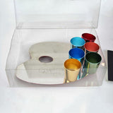 6 aluminum drinking glasses with magnetic bottoms, on chromed-metal palette
