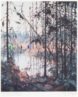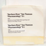 Being from Canada they appropriately claimed one of the country's most revered artists; Tom Thomson. In this work entitled “Northern River / Pharmacology" General Idea took a printed card of one of the painter's most iconic and moody landscapes and added three pill-shaped forms on the horizon line in their signature colors.