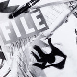 A portrait of a woman fills the frame, her piercing eyes enveloped in the grasp of The Hand of the Spirit of Miss General Idea, one of the group's most enduring and iconic motifs. With the FILE logo above, one might wonder whether this was a work in progress, or a draft composition, for an upcoming Magazine cover...or great example of an independent collage captured on film.