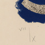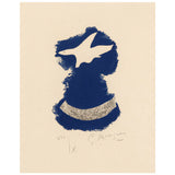 “Le Tir d’Arc”, created only three years before the artist’s death, is a quintessential example of Braque’s later works. The flat white silhouettes of a bird and an arc flatten the expressive application of blue.