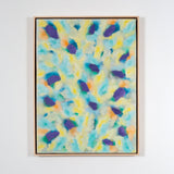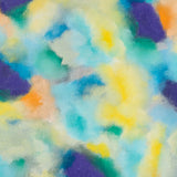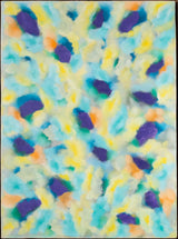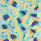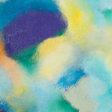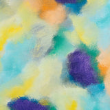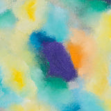 A signature element from this era is the cloud-like formations of color that appear to float or blend realized in rich pastels and jewel-like tones of tangerine, lemon mist, aubergine, aqua, and touches of jade green. The entire surface of the painting is taken over by these swelling elements of color, a true celebration of the medium.
