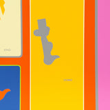 At first glance, the overall composition seems to be an abstract with almost psychedelic elements. On closer inspection we see that the forms are stylized versions of perhaps circus performers: "Seal", "Dog Stands on a Ball", "Trapeze Artist" etc.