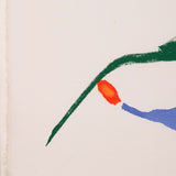 Featuring swaths of periwinkle, hunter green, and blood orange, "A Little Zen" showcases the delicate forms and the diaphanous quality of Frankenthaler's signature color fields. This important screenprint serves as an excellent example of her passion for printmaking.