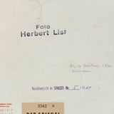 Herbert List (1903-1975) was a German photographer who worked in a variety of genres including travel photography, war reportage, fashion photography, portraiture and Surrealism.