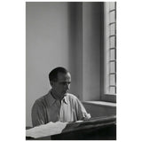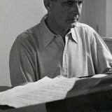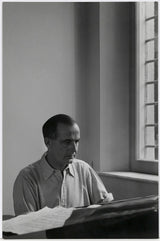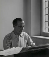 This portrait is of American composer Sam Barber (1910-1981). Barber was one of the most celebrated composers of the 20th century, creating original compositions of orchestral, opera, piano, and choral music. He twice won the Pulitzer Prize for music. Despite bouts with alcohol and depression, Barber continued to write music into his seventies. Herbert List loved photographing composers, and here we see Barber serenely at work on a composition.