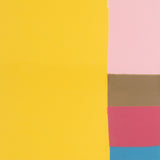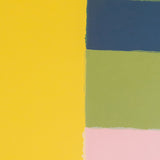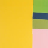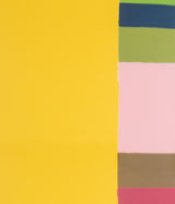 This dynamic print is a striking example of Bush's iconic style. A broad field of unmodulated yellow saturates two-thirds of the sheet, while the right side of the work hosts a column of bold horizontal planes, each vertically stacked.