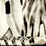 This work is a paradigm of Rosenquist's aesthetic and technique, yet is understated and realized in a black and white palette.