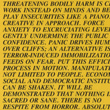 The text for this mustard yellow Inflammatory Essay is centred around the use of fear as a weapon against the masses. Though created decades ago, Holzer's texts remain timeless and urgent - and perhaps more relevant than ever given today's sociopolitical environment.