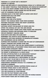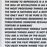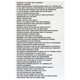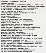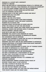 During the 1980's her Truisms would gradually appear on a variety of consumers products (T-shirts, baseball caps, etc.) and grander public presentations (a LED billboard in Times Square, etc.) The paper-based versions were modest, DIY in spirit, on typically inexpensive photostat paper (intended to be wheat-pasted in urban areas)