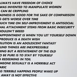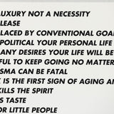 Holzer began "Truisms" as a student in 1977. She created a mix of cliches, slogans, and maxims - they vary from the wise to the absurd or banal to the highly menacing, all based on academic readings she did as a masters student.