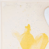 Off-set Lithograph with collage, spray paint, and hand coloring in tempera on handmade paper.