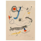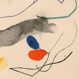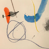 This print is a paradigm of his work and artistic expression. It is from the “Quelques Fleurs” portfolio. The prints in this portfolio were based on watercolors from his book “Je Travaille Comme un Jardiner” (“I work like a Gardener”) that were reproduced by Miró as an edition of prints. Each print in this portfolio was dedicated to one of his friends.