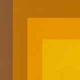 This is a classic and instantly recognizable example of Alber's signature motif from the 1960s. Hypnotic, simple, and striking, Albers uses color and geometry to maximum effect. Sunflower yellow evolves into shades of harvest gold and teak, a definitive palette of the era.