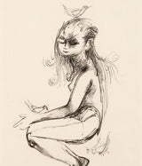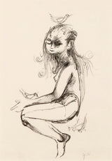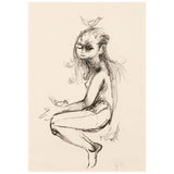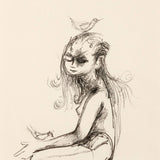 JOYCE WIELAND "GIRL WITH BIRDS" DRAWING
