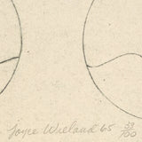 Furthermore, when this work is viewed in context with the other prints in the portfolio, by celebrated artists such as Michael Snow, Sorel Etrog and William Ronald (to mention a few), we are reminded of Wieland's confidence and singularity of vision. Her contribution is almost entirely text-based and monochromatic - in the context of both the era and her contemporaries this is remarkably bold and unique.