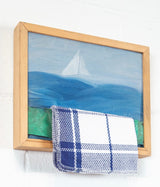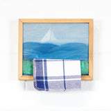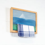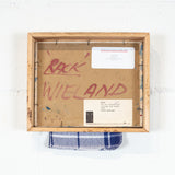 Although "Rack" is more intimately scaled, it still has the power and pulls of her male contemporaries' large works. Her painting is literally a window on another world. One could argue that the artist is actually stuck indoors dealing with domestic tasks while dreaming of the freedom and danger of the open seas. Plus there is the possibility of a double-entendre in the title as the tea-towel sits on a "rack" which is a common slang word for a woman's bust. Finally, the verso of the work Wieland has boldly scrawled her name and the title in a material that looks like red lipstick.Â