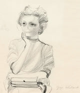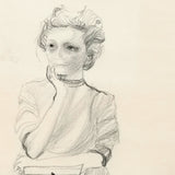 All biographies of the artist have noted that she was an artist constantly sketching, doodling and drawing. One of her most common subjects was stylized, cartoon or idealized versions of her self or "woman". While this work has been claimed as a self-portrait it is a version of the artist poised, contemplative and elegant.