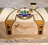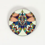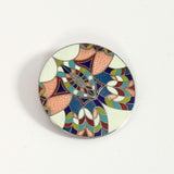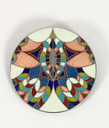 This cloisonné pin relates to the original “Hildegard of Bingen” place setting from The Dinner Party.