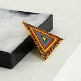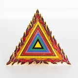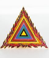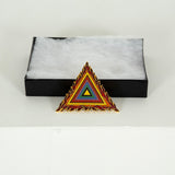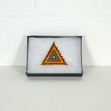 This pin features the powerful logo Judy Chicago designed for "The Holocaust Project". The logo was both a memorial to the Nazi's victims and a new icon to symbol of courage and survival. The logo is based on a larger-stain glass artwork created for the exhibition of the same design.